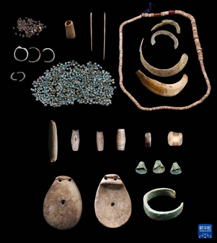 西藏康马玛不错遗址出土的第二期遗物(石质、骨质、金属装饰品,骨针、滑石珠、红玉髓、玻璃珠等)(资料照片)。