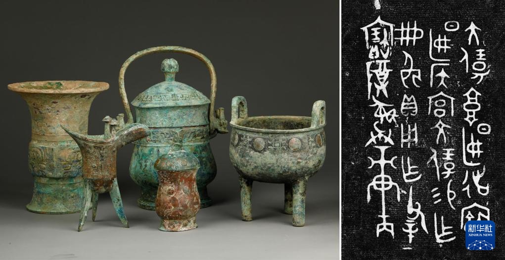 北京房山琉璃河遗址出土的作册奂青铜器组合及其铭文(拼版照片)。