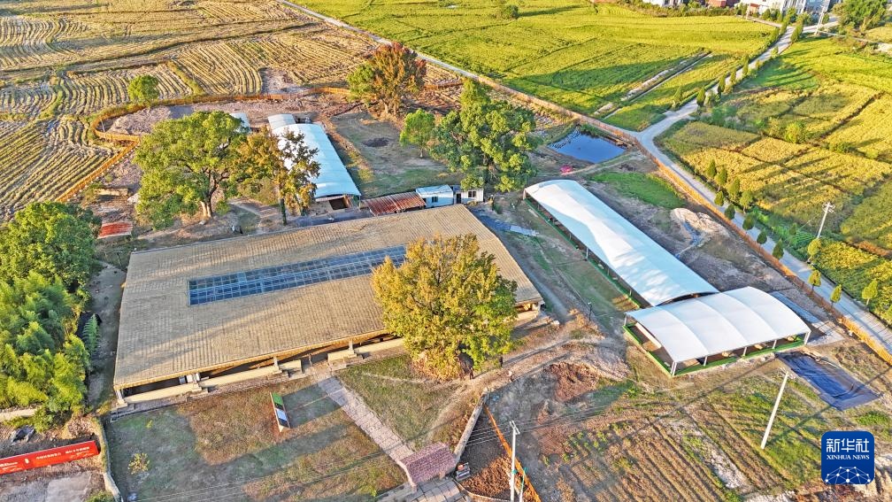 浙江仙居下汤遗址航拍图,遗址上方已修建了保护棚(资料照片)。
