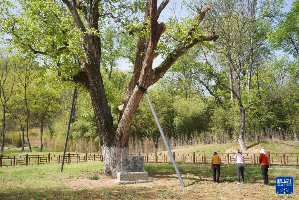 洛南县桃悠谷景区的特级保护古树——树龄1300余年的核桃树(4月23日摄)。