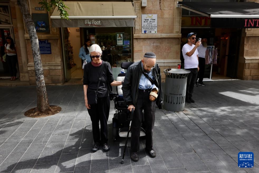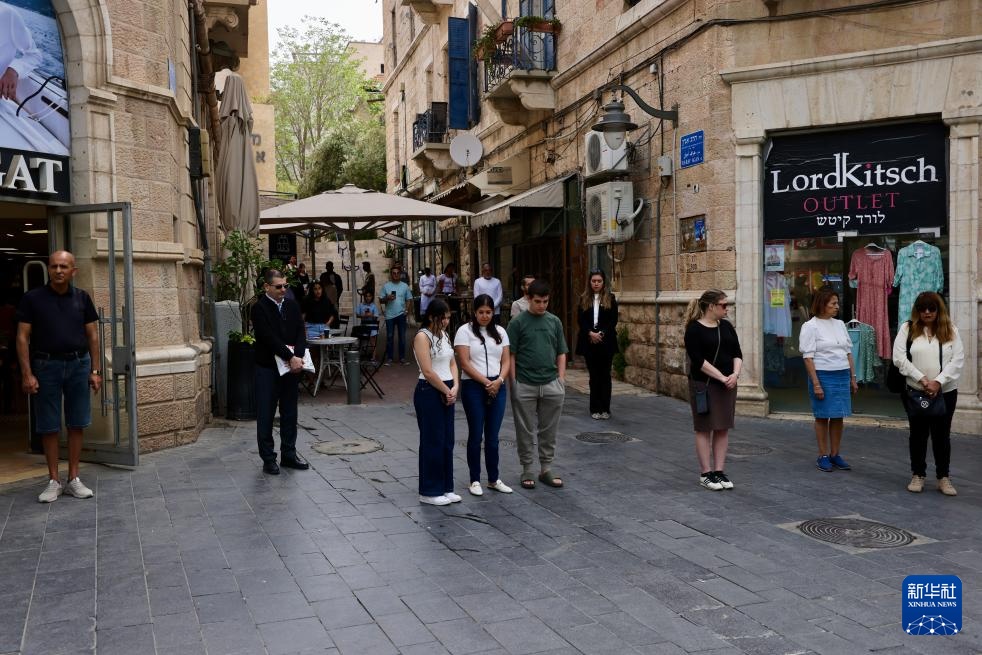 4月24日,人们在耶路撒冷街头肃立默哀,悼念第二次世界大战中的犹太死难者。
