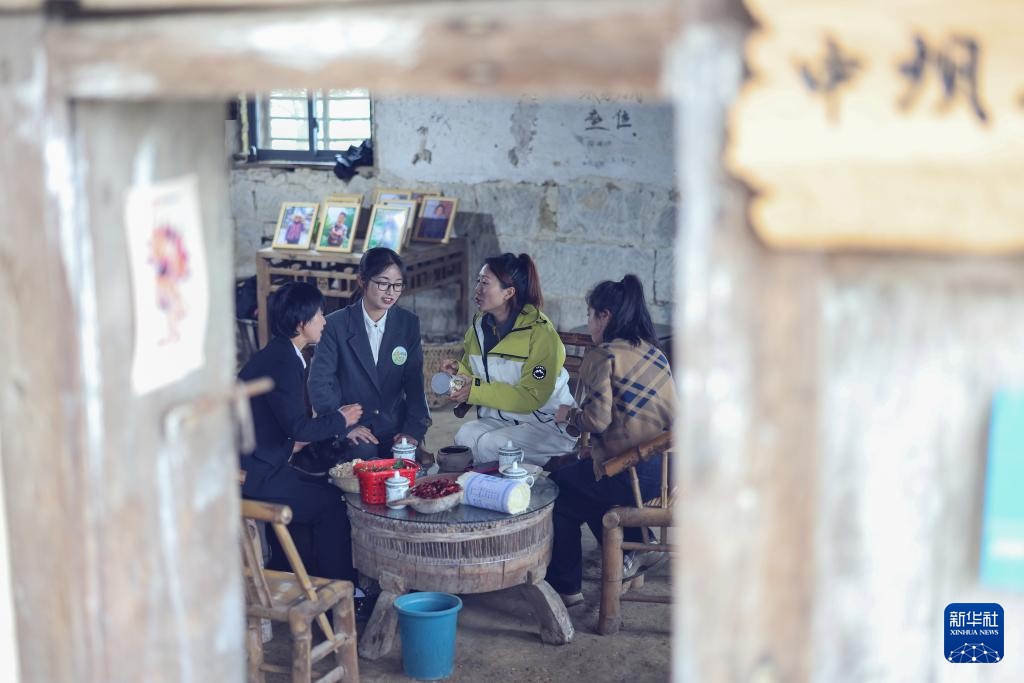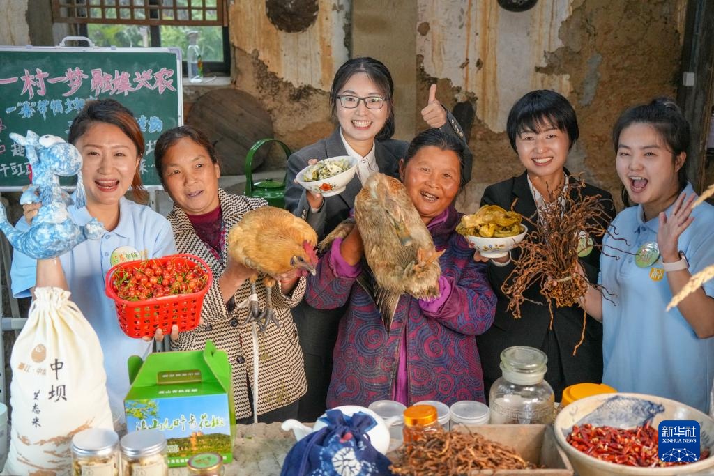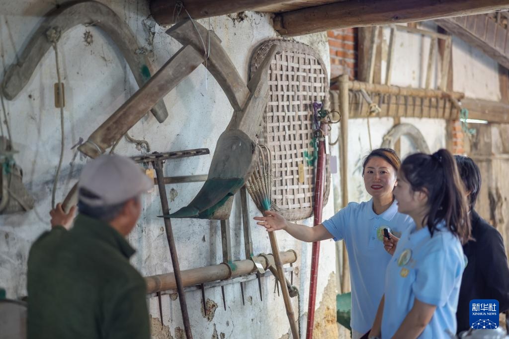 4月24日,在重庆市綦江区三角镇中坝村,“村书记”主播团在直播间和村民一起介绍乡村农耕文化。