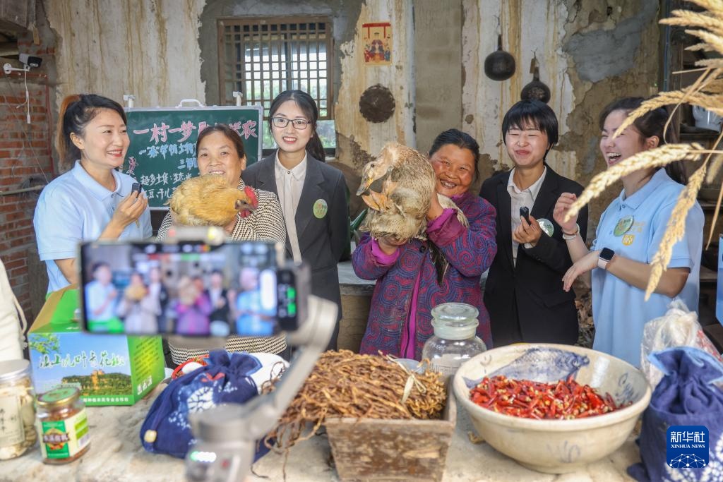 4月24日,在重庆市綦江区三角镇中坝村,“村书记”主播团一起研讨短视频内容创作脚本和直播间推介土特产的选品。