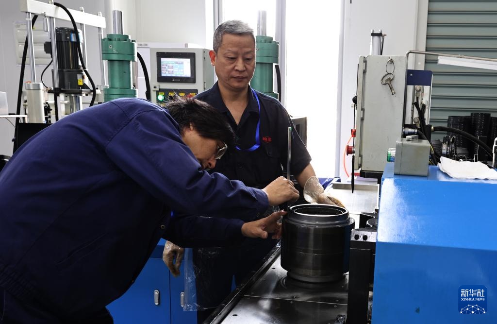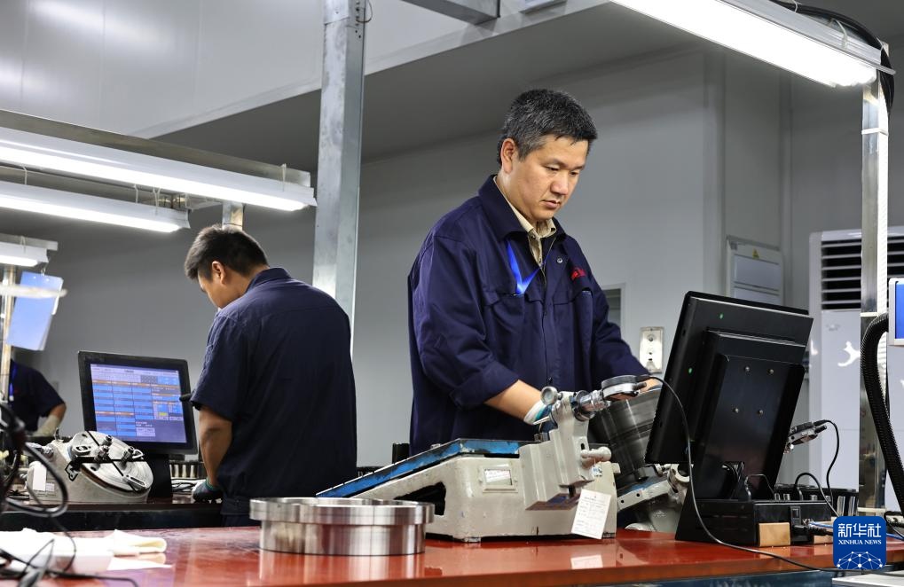 4月25日,工人对轴承的安装精度进行手工测量。