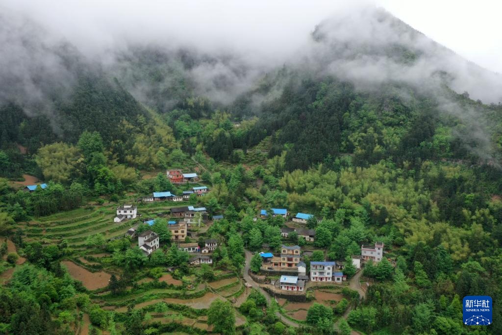 这是广西全州县蕉江瑶族乡苦马田教学点所在的山村(4月24日摄,无人机照片)。