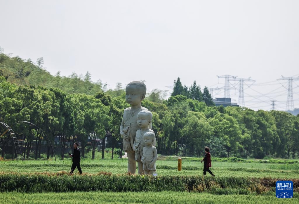 当日,“艺术在南山·大地艺术季”在浙江省湖州市吴兴区东林镇的麦田开幕。活动联手中国多家美术学院的师生作为主创团队,在东林镇田野与村落中创作42件在地性大地艺术作品,以广袤大地为画布、以自然元素为媒介,将艺术装置、景观艺术等多元艺术形式巧妙融入田野与村落,精心构建“没有屋顶的美术馆”,让游客和当地群众在乡野间品味艺术。