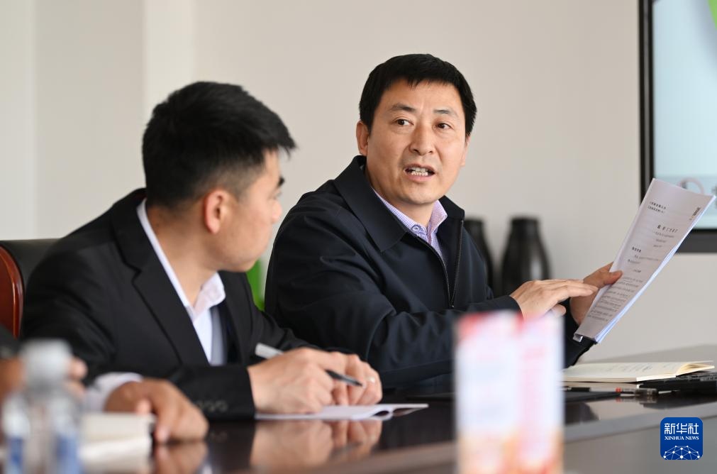 张振连(右)在中石化第四建设有限公司工匠学院进行两会精神宣讲(4月10日摄)。