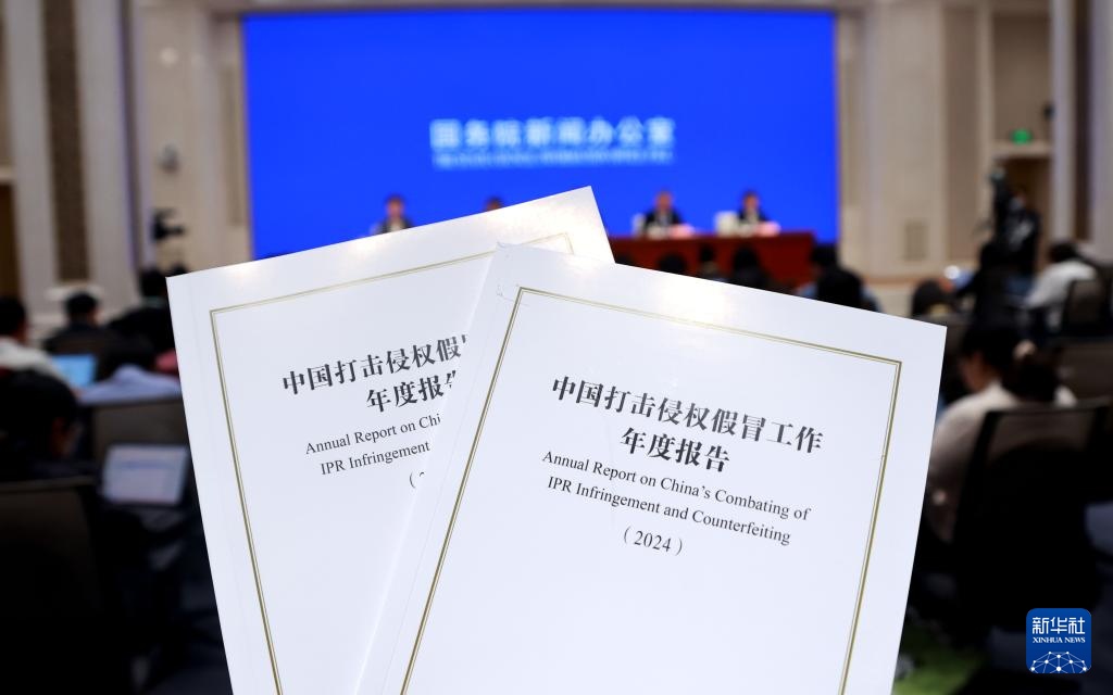 4月25日拍摄的《中国打击侵权假冒工作年度报告(2024)》。