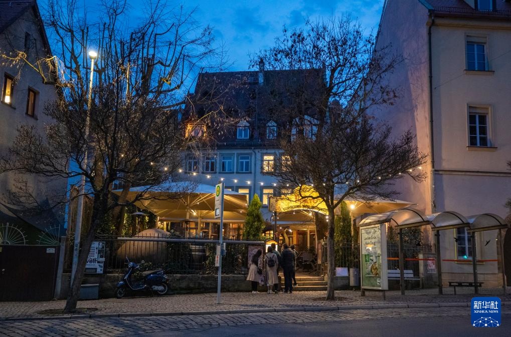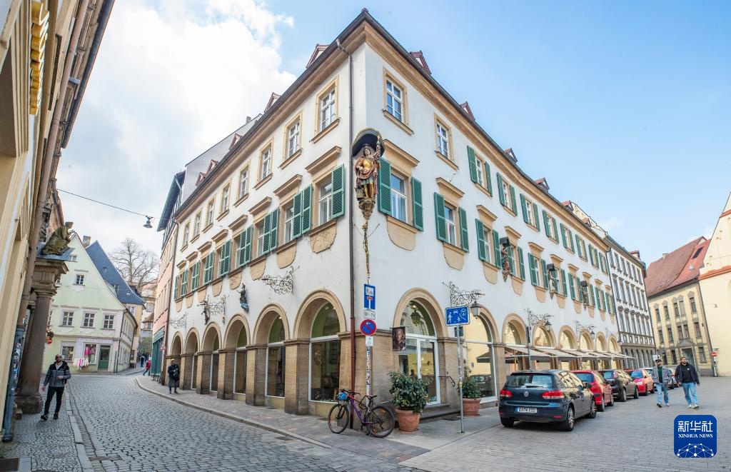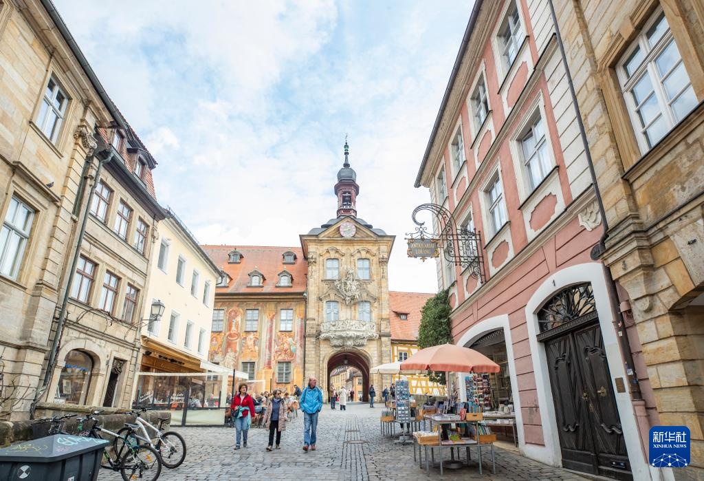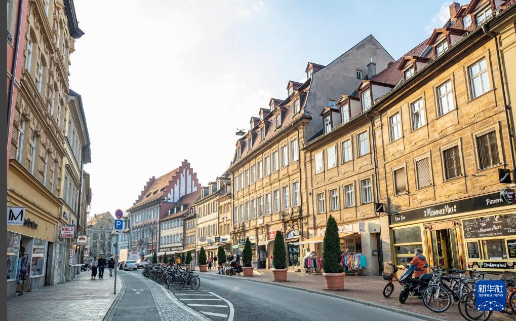 这是3月25日在德国班贝格古城拍摄的街头景象。