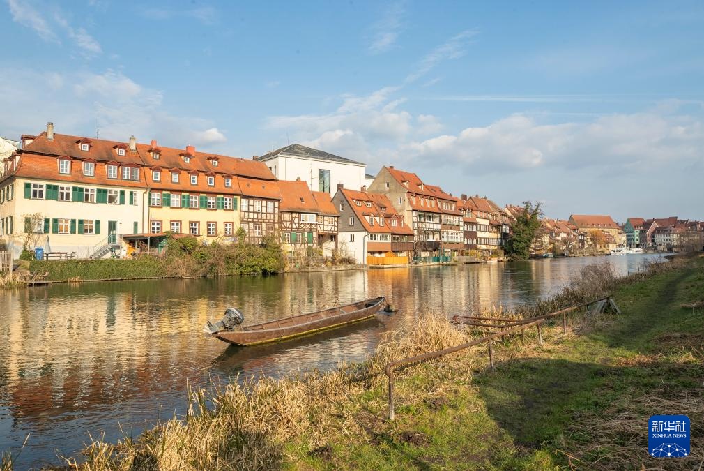 这是3月23日在德国班贝格古城拍摄的雷格尼茨河畔景象。
