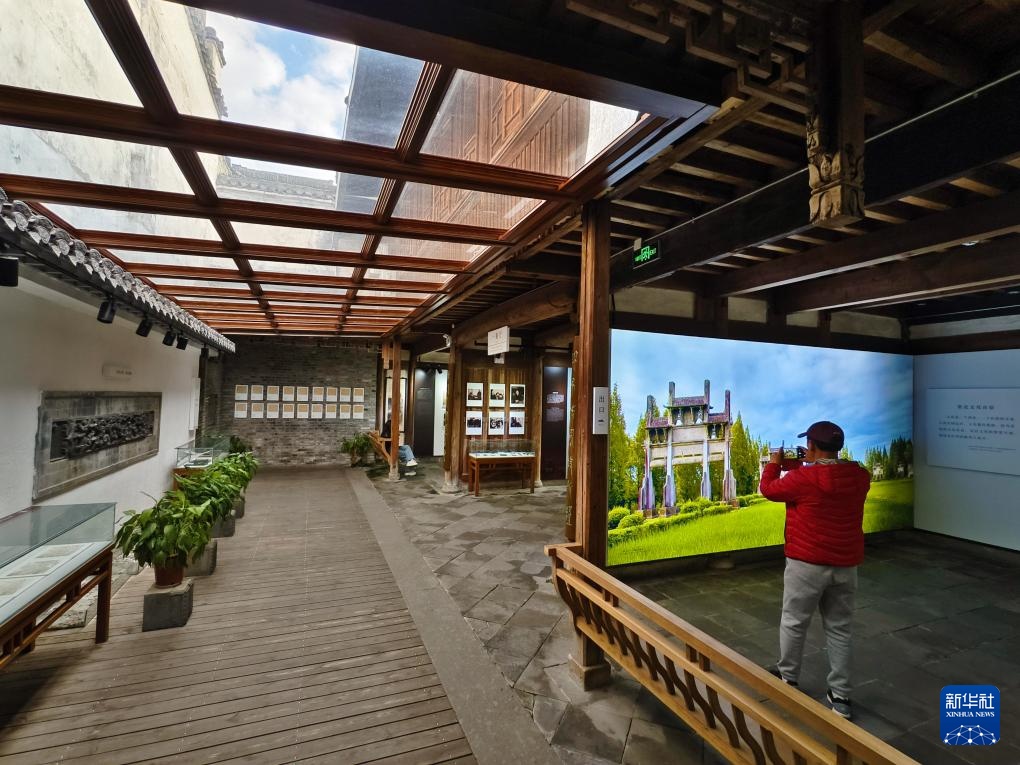 3月18日,游客在安徽歙县徽州古城的黄宾虹纪念馆内参观。