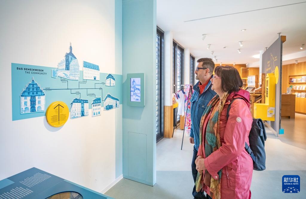 3月24日,在德国班贝格古城,人们在德国班贝格世界遗产中心参观。