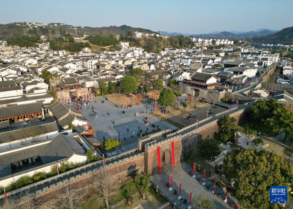 这是3月19日航拍的安徽歙县徽州古城内的阳和门城楼。