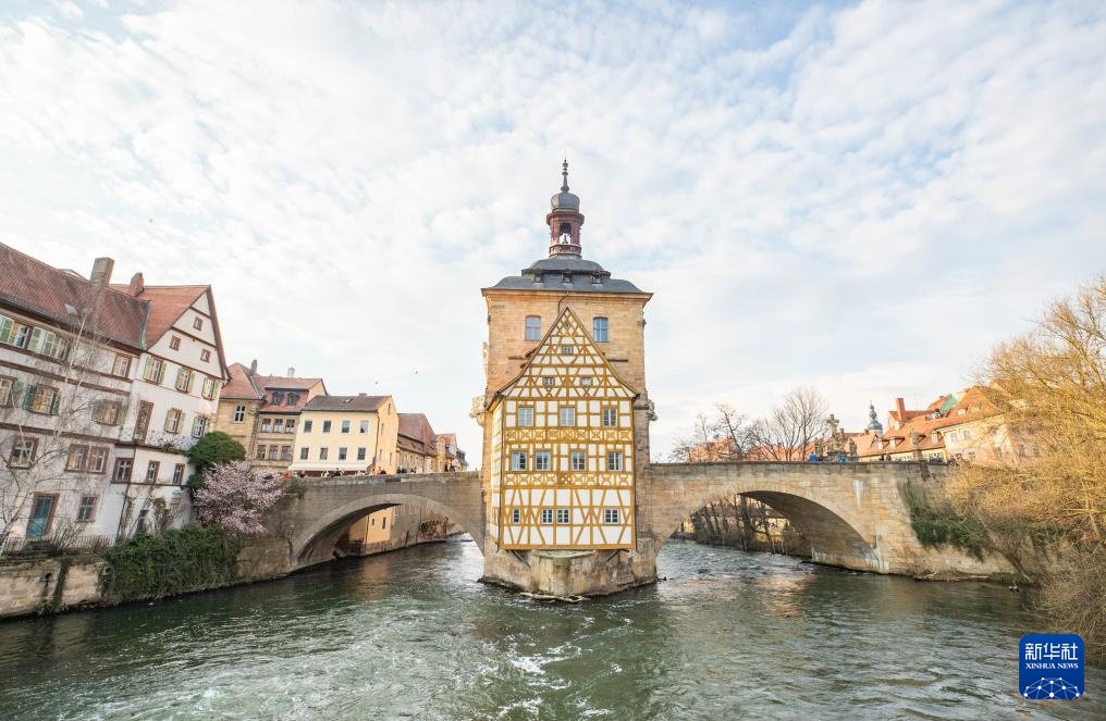 这是3月23日在德国班贝格古城拍摄的班贝格老市政厅。