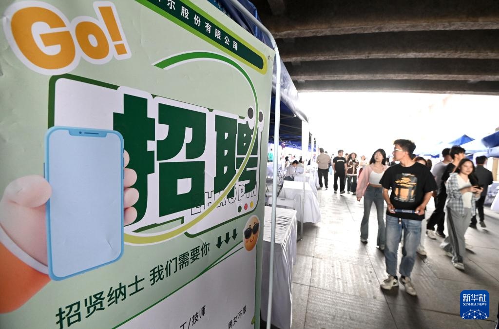 4月26日,在河北省第二届职业技能大赛的技能人才就业招聘会上,参会人员在关注工作岗位。
