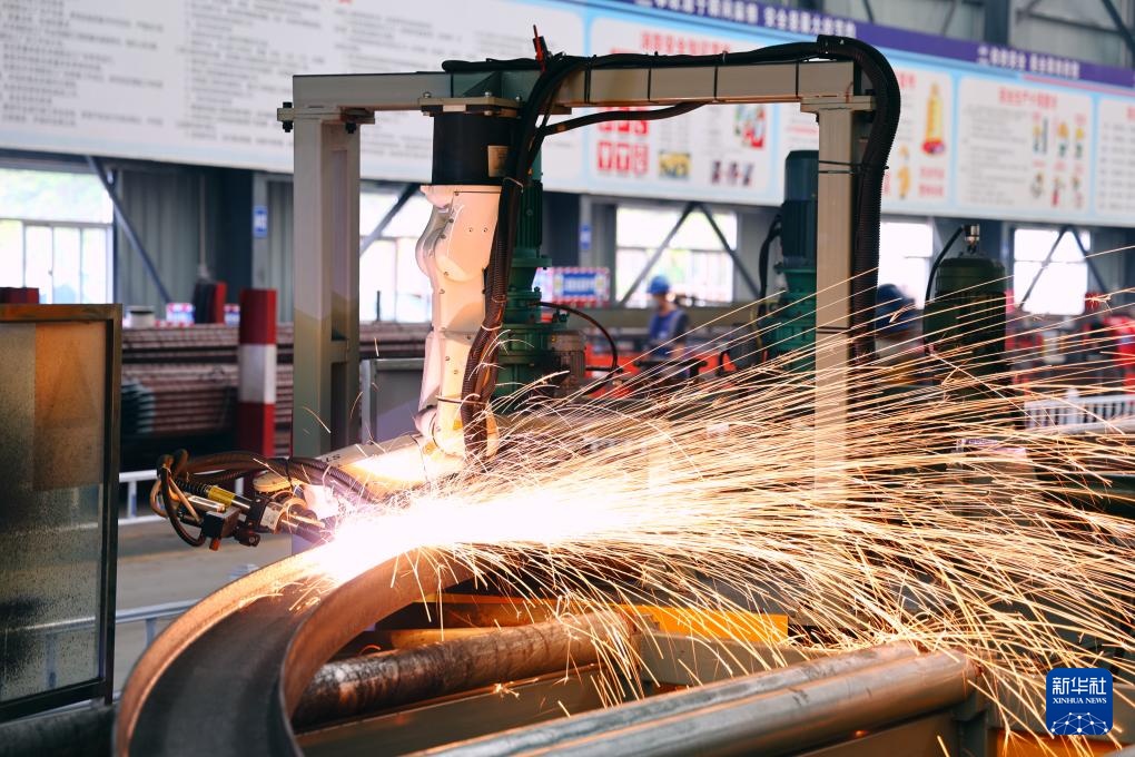 4月27日,深圳外环田头山隧道群钢筋场的机器臂在焊接拱架。
