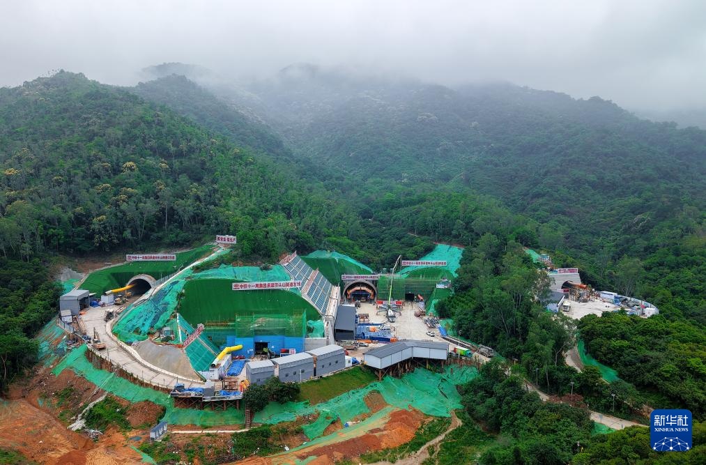 4月27日,深圳外环田头山隧道群五条隧道全面开挖(无人机照片)。