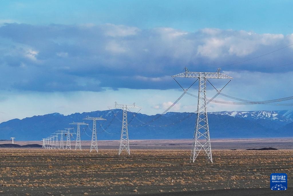 这是4月24日在新疆哈密地区三塘湖镇附近拍摄的“疆电入渝”特高压工程(无人机照片)。