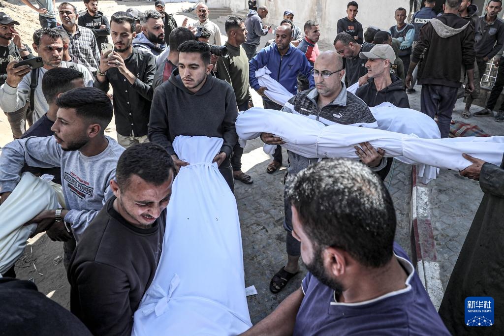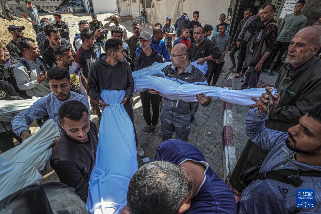 4月26日,民众在加沙城搬运遇难者遗体。