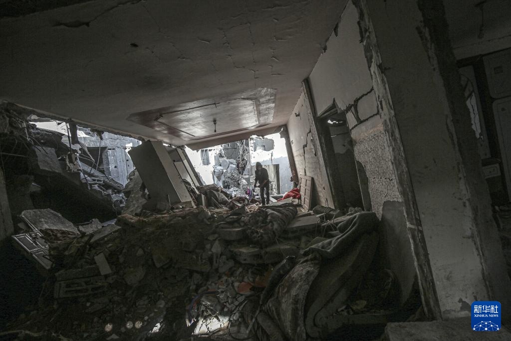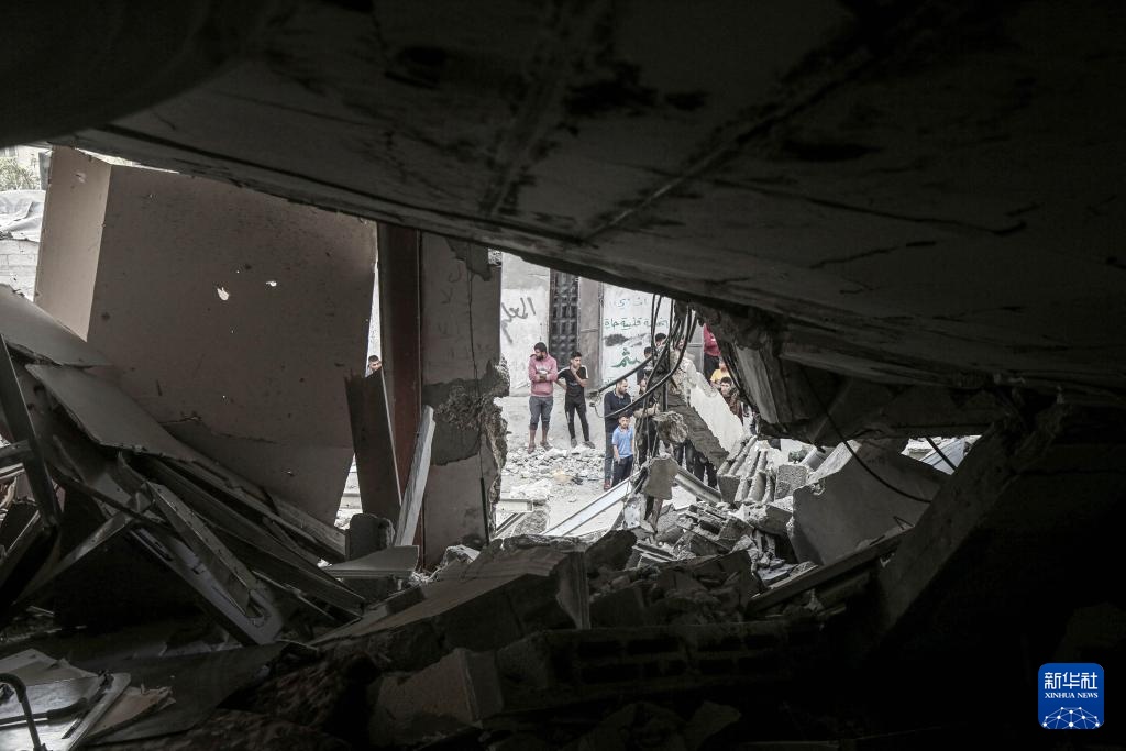 4月26日,当地民众在加沙城查看以军袭击后的废墟。