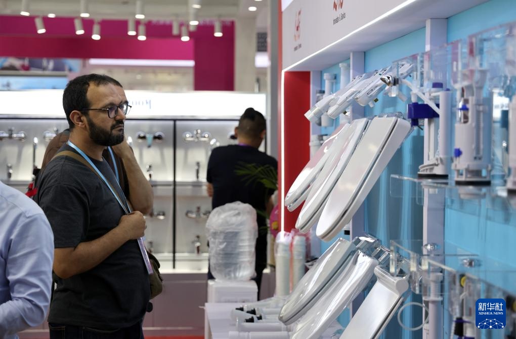 客商在广交会上参观选购卫浴产品(4月23日摄)。
