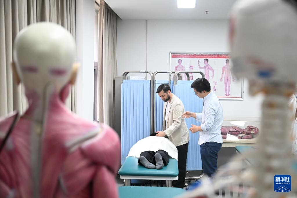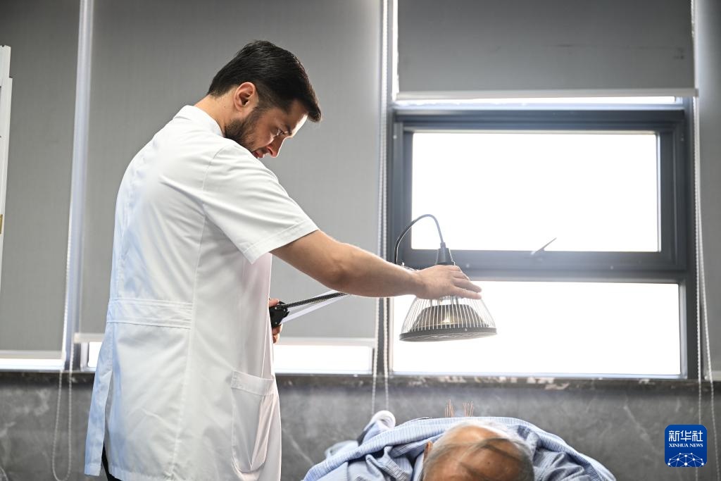在南京中医药大学第二附属医院(江苏省第二中医院)针灸康复科,门诊患者经常会看到一位中亚面孔的“洋医生”。他是南京中医药大学2023级针灸推拿专业的硕士研究生阿米尔中,今年29岁,来自塔吉克斯坦首都杜尚别。