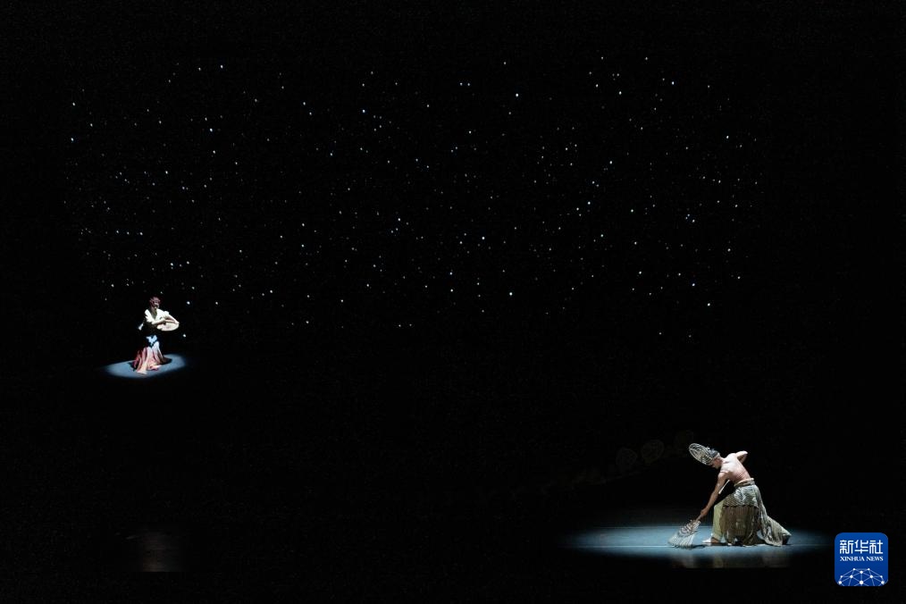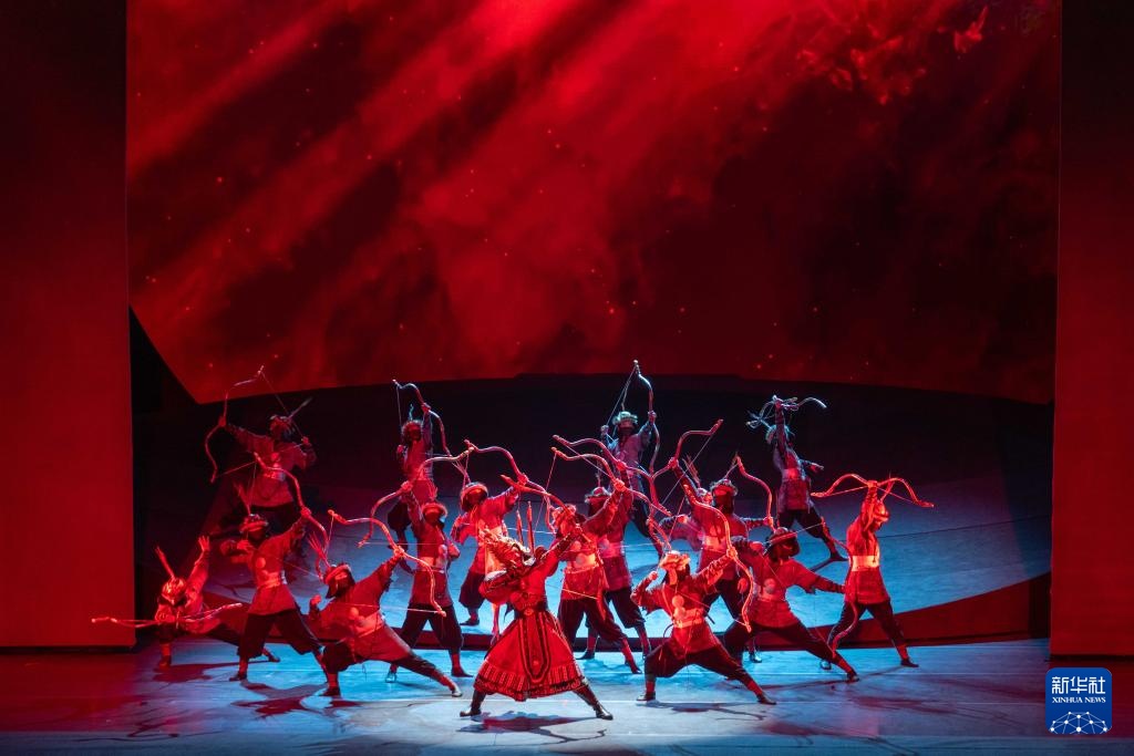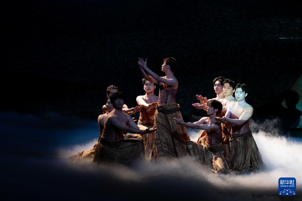 4月28日晚,演员在表演舞蹈史诗剧《诗经·格萨尔》。