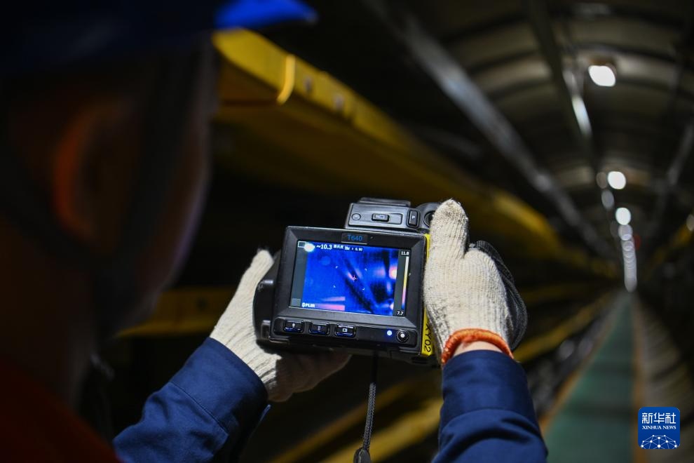 张华在天津延吉道220千伏电缆隧道使用热成像仪开展特巡(4月26日摄)。