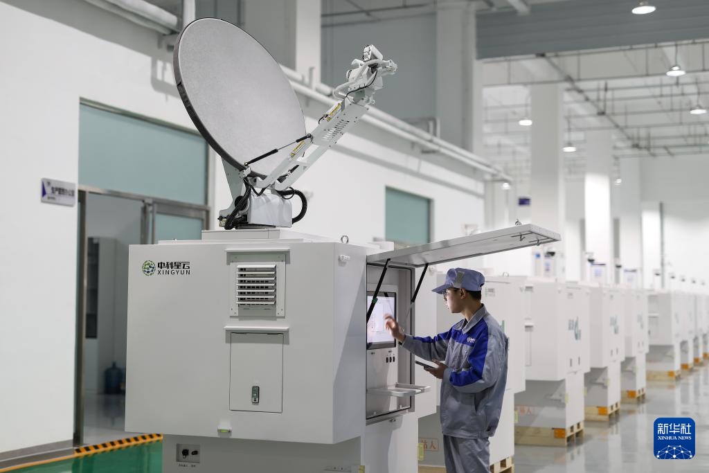 4月21日,工作人员在中科星云智造基地调试一款装有卫星天线的数据方舱产品。位于鹤壁的中科星云智造基地有数据方舱、服务器两条全流程智能生产线。数据方舱产品为工业互联网、卫星互联网等多领域提供“移动数据中心+边缘计算”一站式解决方案。