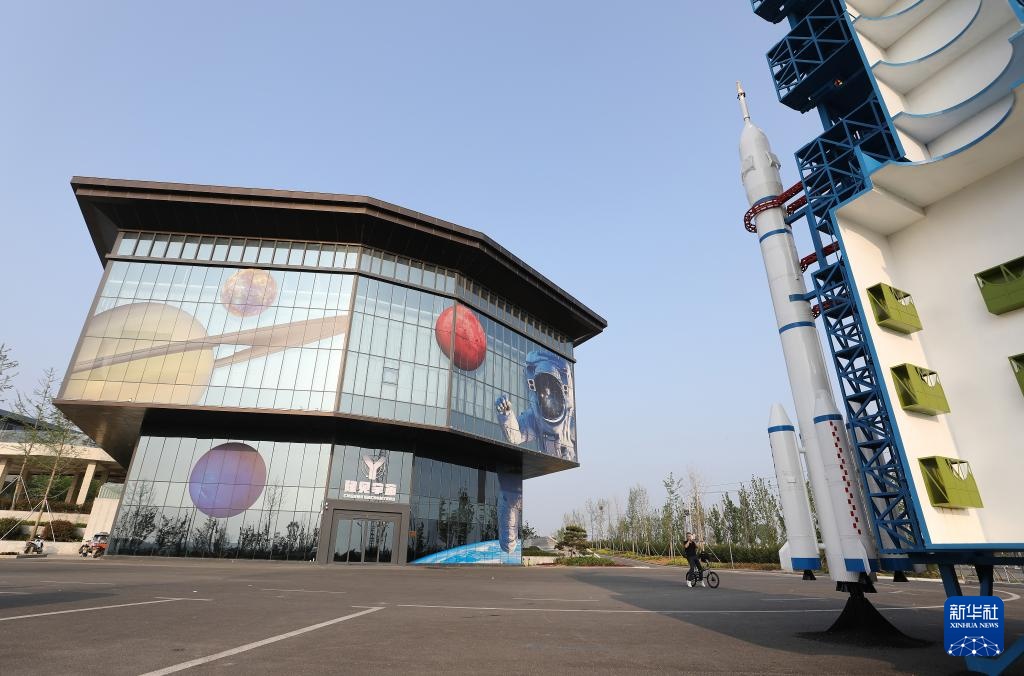 这是4月20日拍摄的豫见宇宙航天探索中心外景。豫见宇宙航天探索中心位于鹤壁市卫星智造产业园,是集沉浸式游览、航天任务体验、航天科普教育功能为一体的航天科普研学基地。