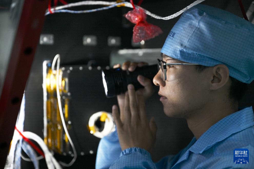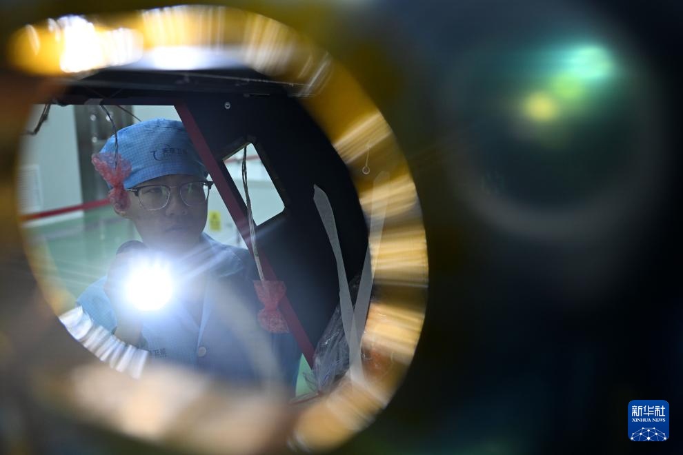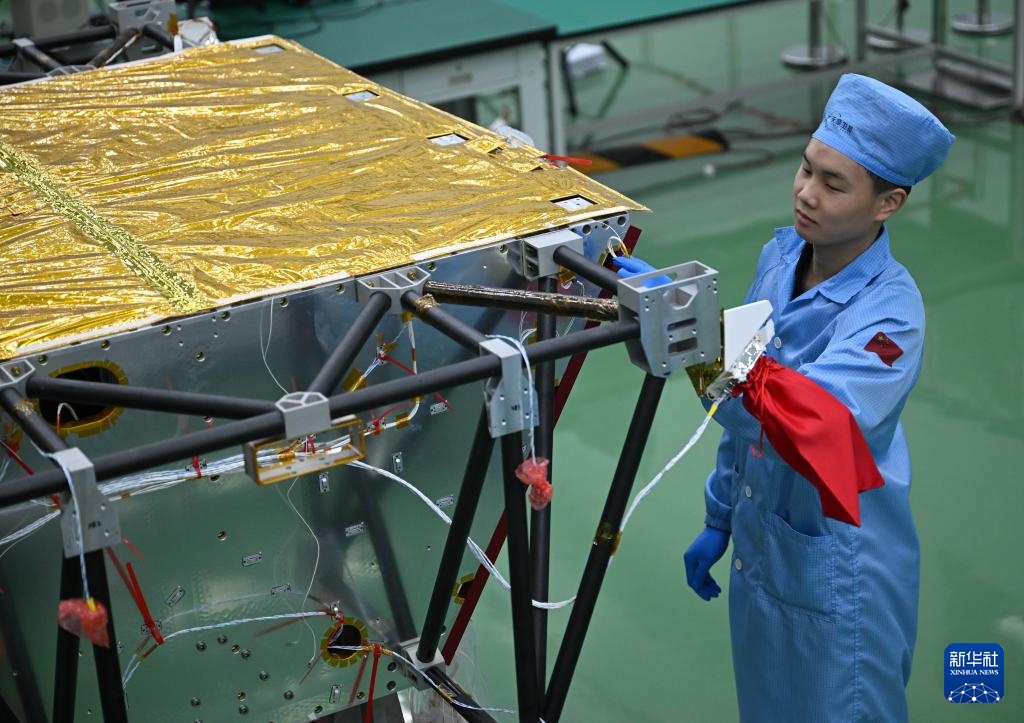 4月21日,天章卫星工作人员在查看一颗卫星的组装情况。入驻鹤壁市卫星智造产业园的企业天章卫星,成功获批建设年产100颗卫星的生产资质,是集研发、制造、总装、测试于一体的卫星制造基地。