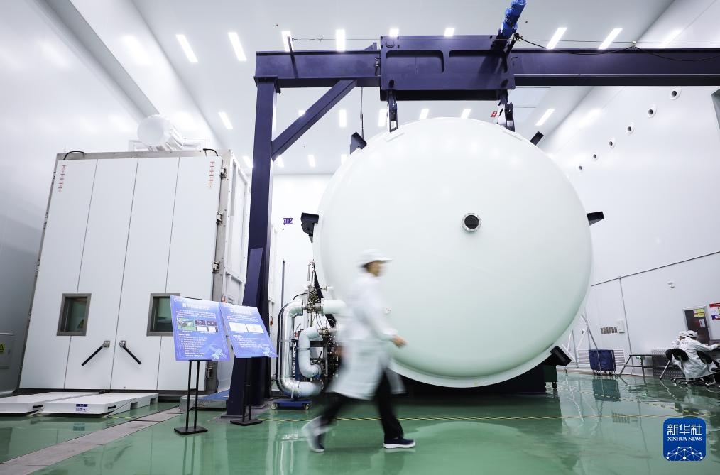 4月21日拍摄的天章卫星车间内的中场定标系统。入驻鹤壁市卫星智造产业园的企业天章卫星,成功获批建设年产100颗卫星的生产资质,是集研发、制造、总装、测试于一体的卫星制造基地。