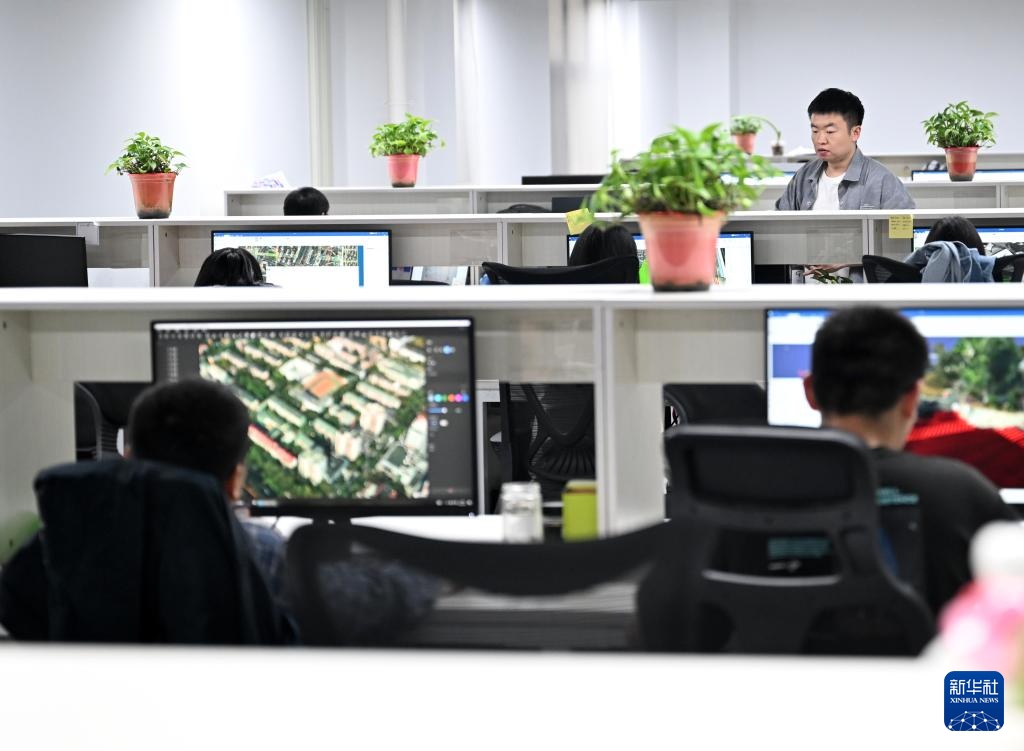 4月21日,航天宏图工作人员在处理卫星数据。卫星互联网企业航天宏图的华中总部设在鹤壁市,该公司的“女娲星座”目前已实现12颗遥感卫星在轨运行,卫星数据应用于智慧城市、水利安全、灾害预警等系统。
