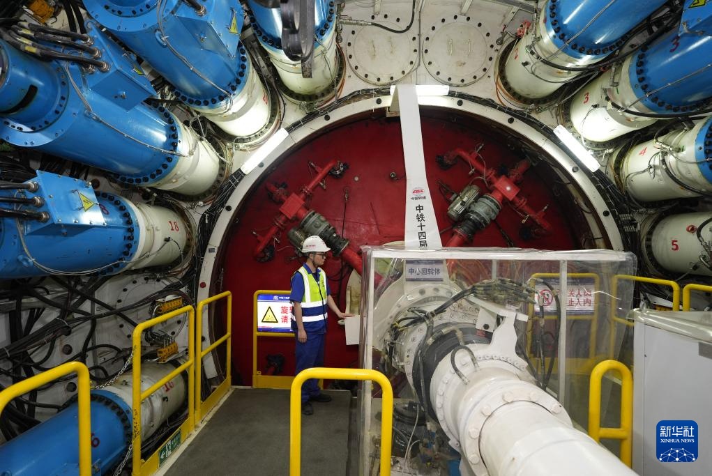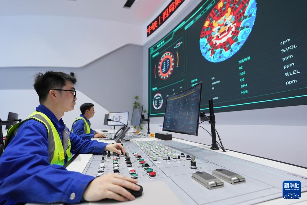 4月30日,中铁十四局技术人员在甬舟铁路金塘海底隧道“甬舟号”盾构机内关注设备运行情况。