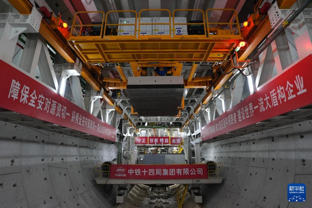 4月30日,中铁十四局技术人员利用起重机将盾构管片吊装至58米深的工作井下。