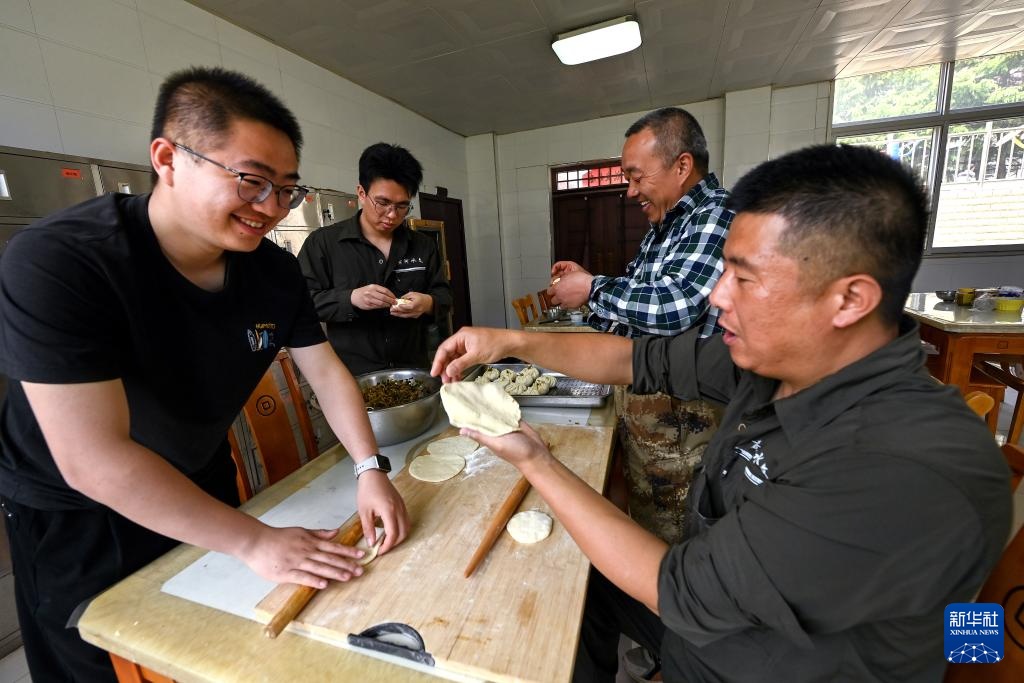 4月29日,龙门水文站职工在食堂准备午餐。