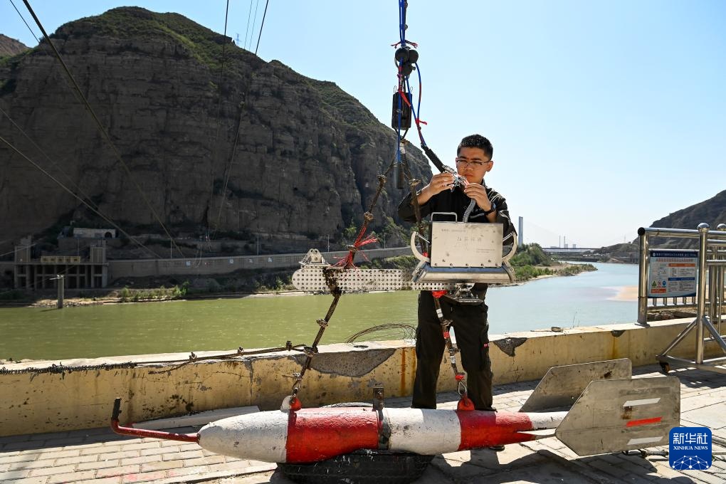 4月28日,龙门水文站测验组组长张洋在安装取沙采样器。
