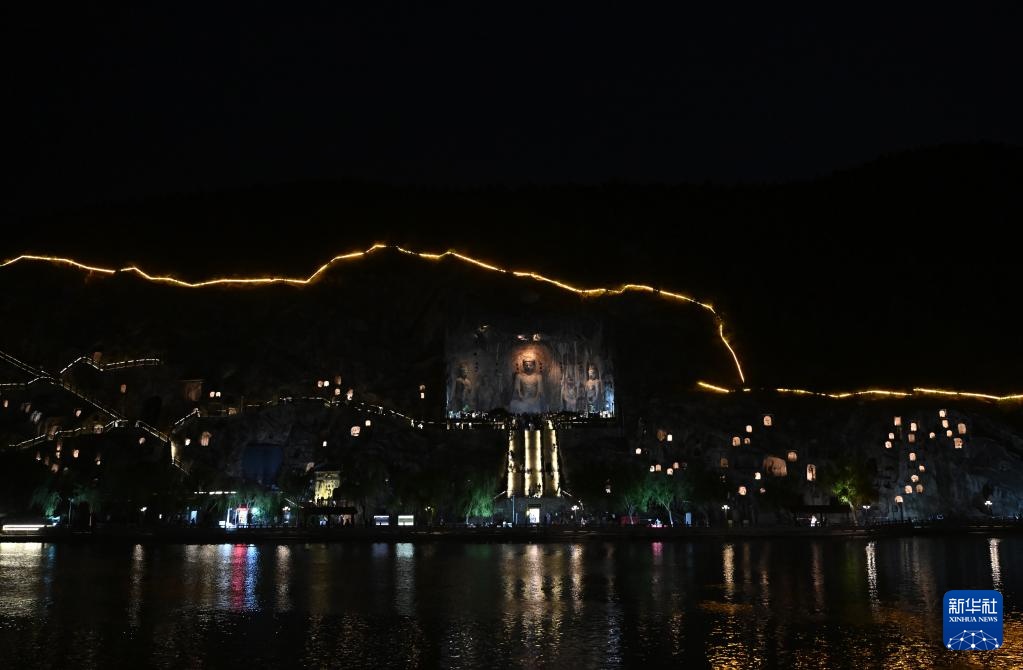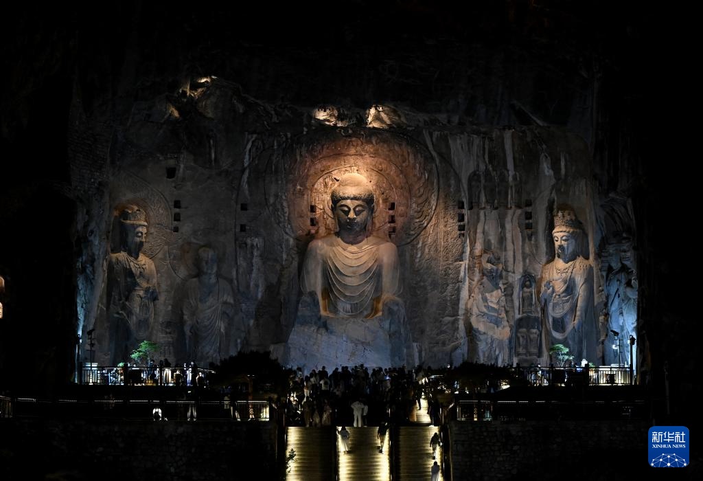 4月24日,游客夜游龙门石窟。