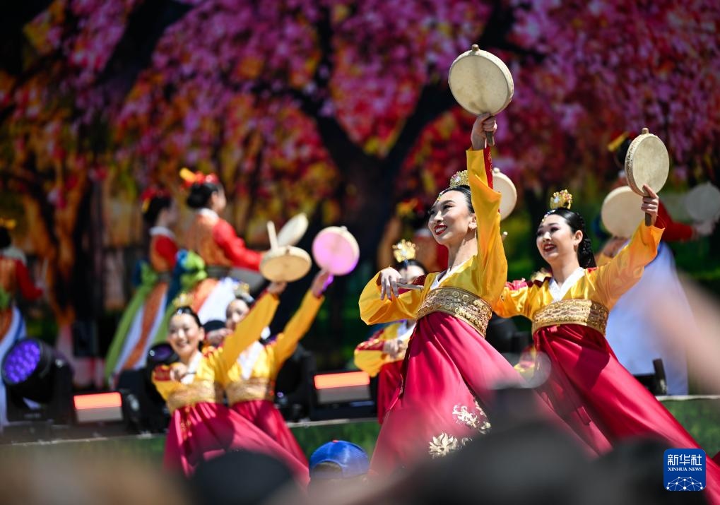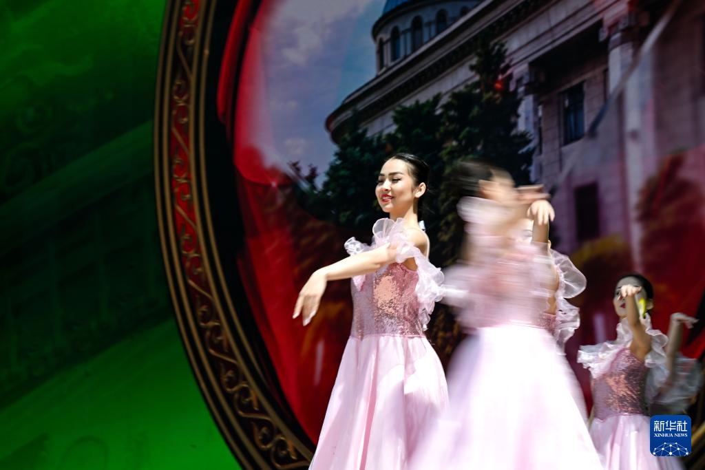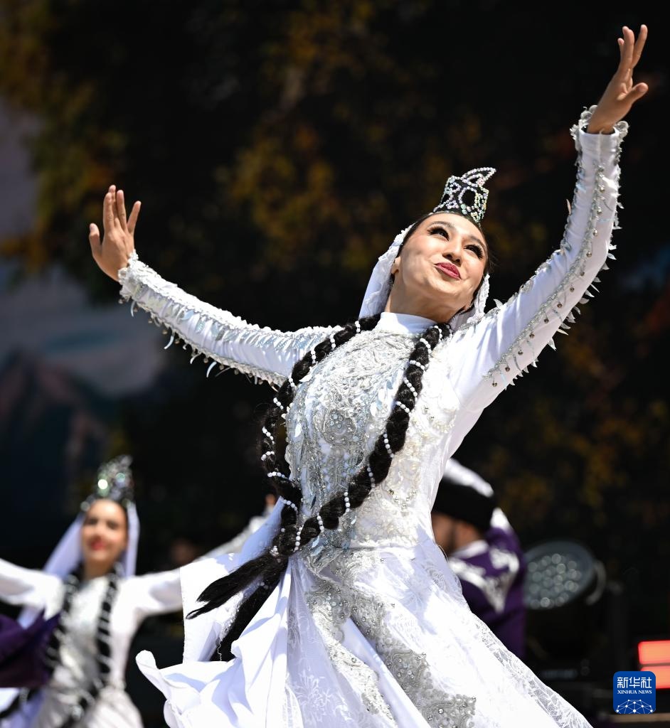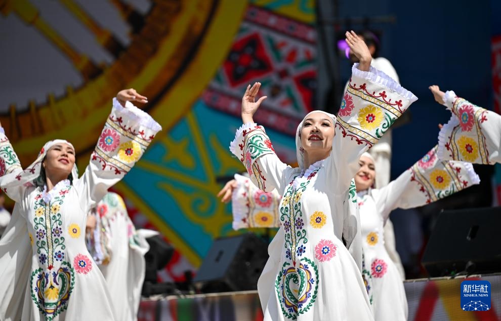 5月1日,演员在哈萨克斯坦阿拉木图表演舞蹈,庆祝民族团结日。