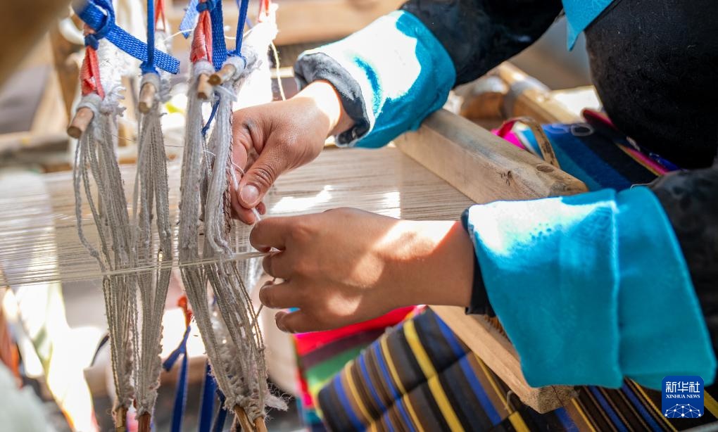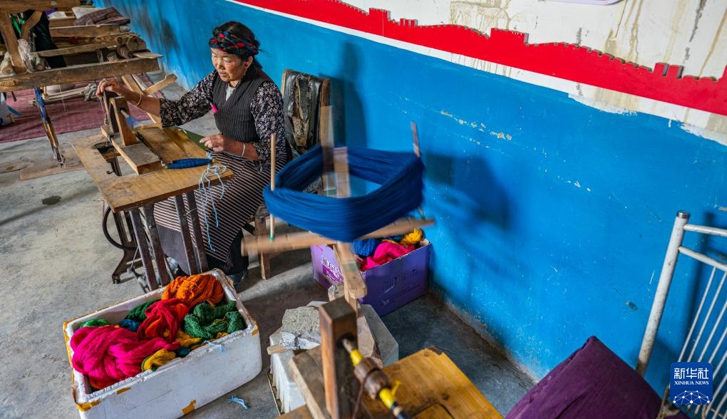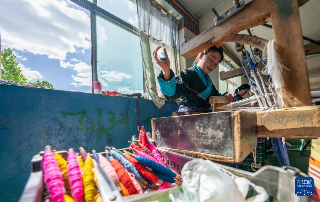 编织机发出规律的“咔嗒”声,五彩羊毛线在晨光中交织,旦增卓嘎和杰德秀镇的妇女们编织着“彩虹”,把雅鲁藏布江畔的幸福生活晕染成色彩斑斓的图案。