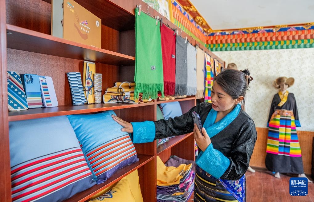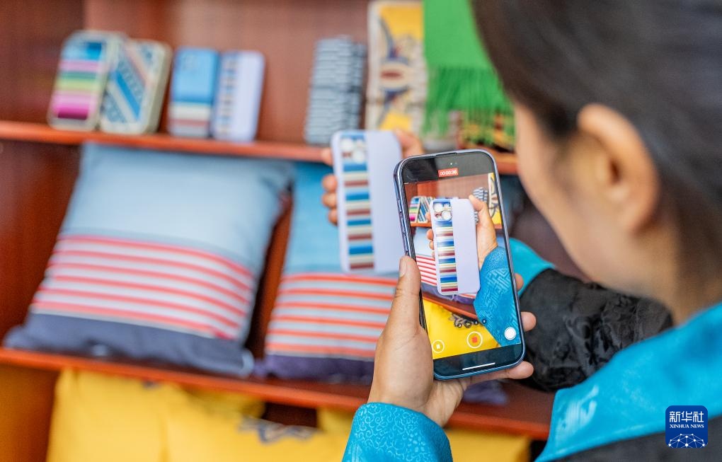 旦增卓嘎接手合作社后,积极创新产品形式,将“邦典”的图案和色彩“搬”到了地毯、靠垫、手机壳等产品上。合作社产品远销海外10余个国家,深受广大消费者青睐。