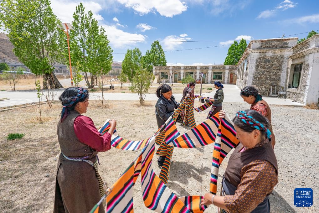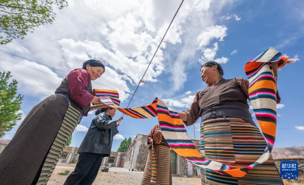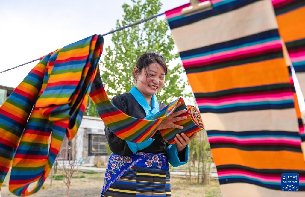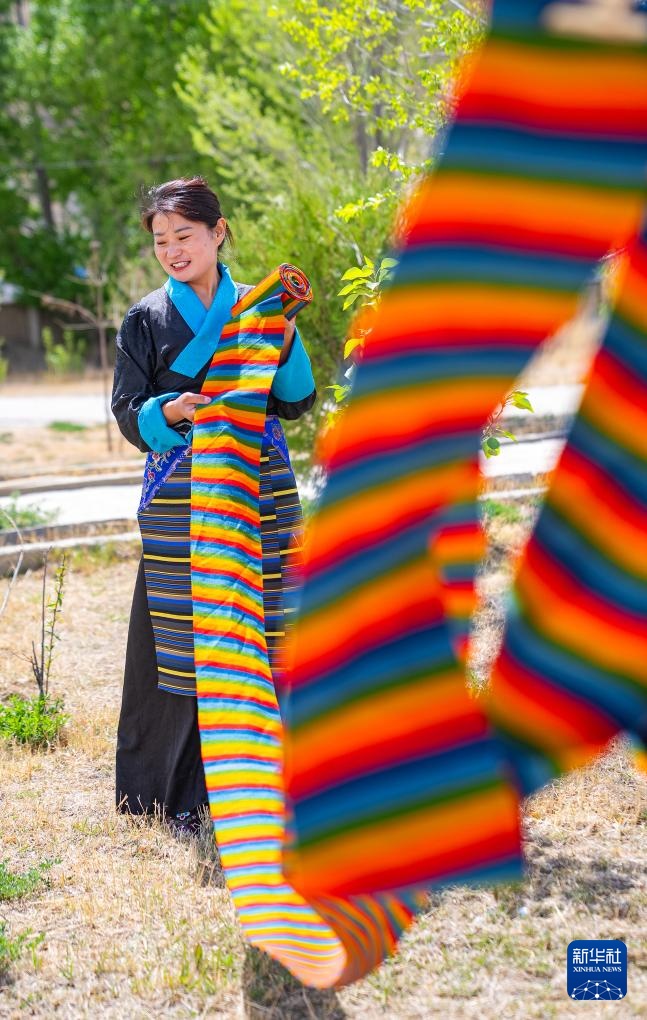 山南市贡嘎县杰德秀镇的格桑围裙农牧民专业合作社里,全国劳动模范旦增卓嘎俯身于编织机前,指尖翻飞间,彩色“邦典”徐徐织就。