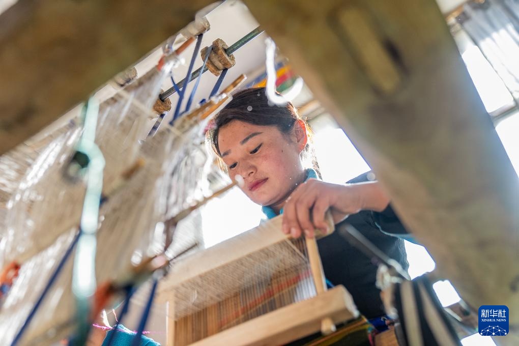 旦增卓嘎13岁开始跟着母亲学习“邦典”织造技艺,从漂洗羊毛、捻线染色到“邦典”织造,每一道工序她都牢记于心。