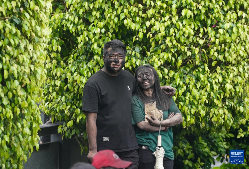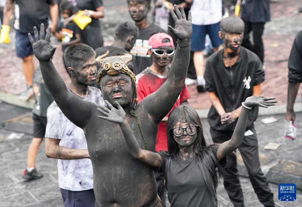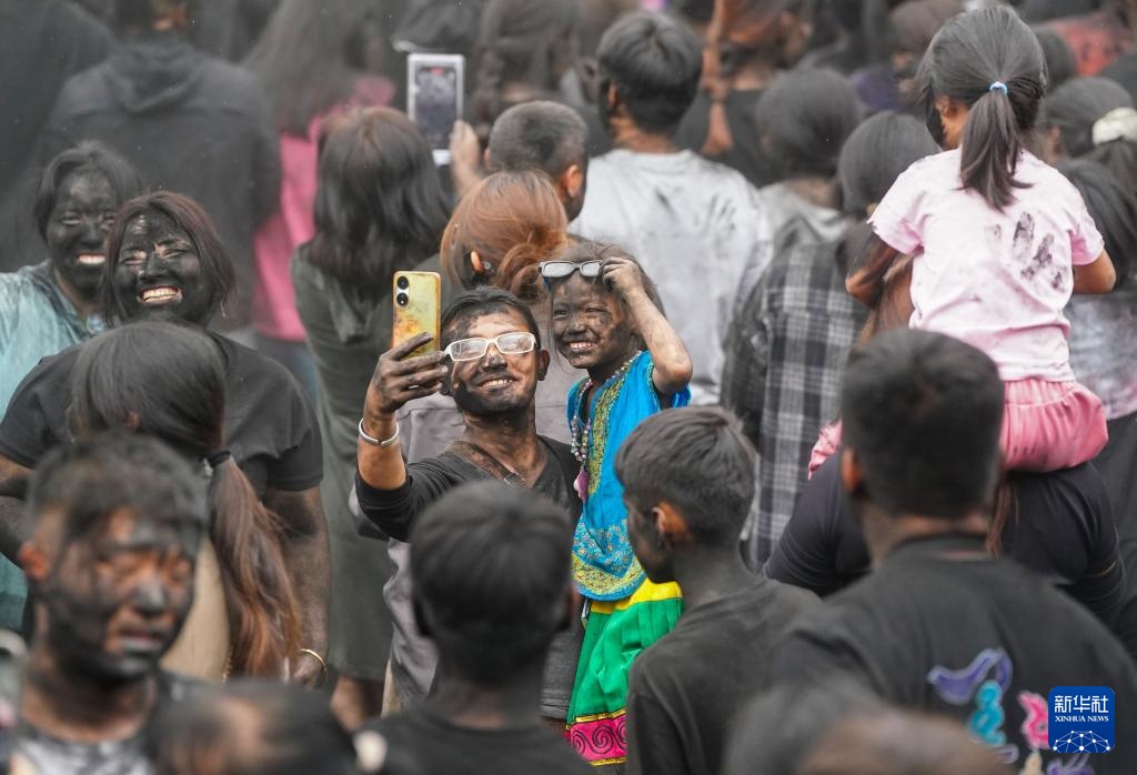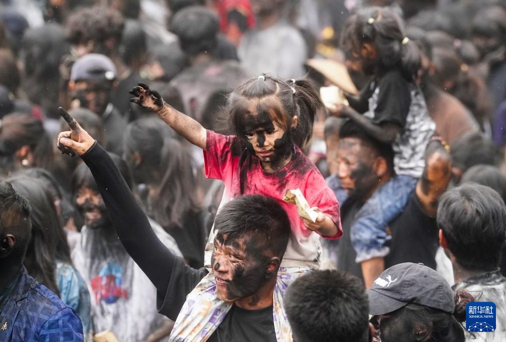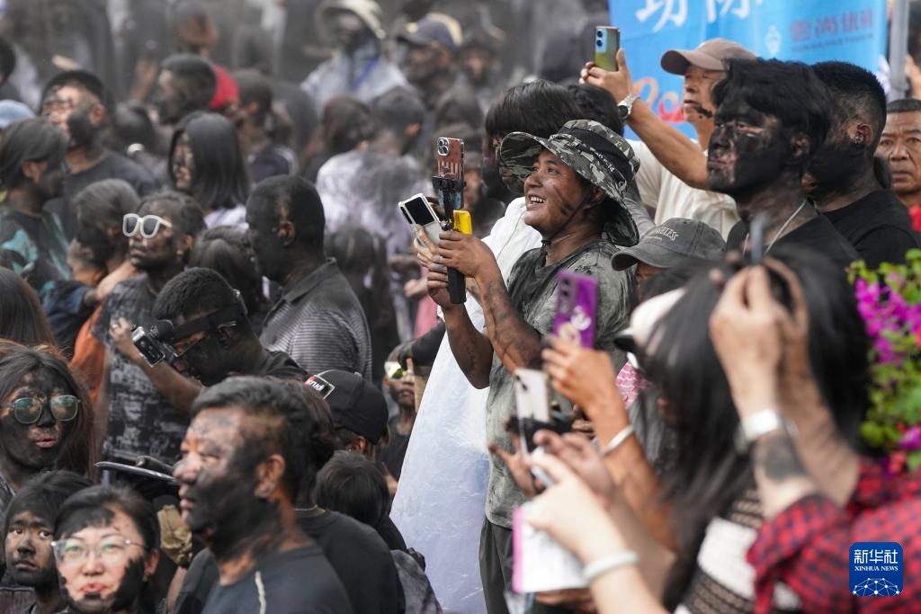 当日,“抹黑脸”狂欢活动在云南省普洱市墨江哈尼族自治县太阳广场举行,当地群众与各地游客通过相互涂抹黑脸的方式互致祝福,这一传统民俗活动承载着人们对美好生活的期许。