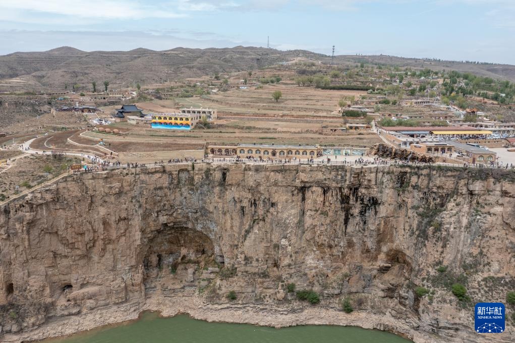 5月2日,游客在内蒙古自治区呼和浩特市清水河县老牛湾村游览(无人机照片)。