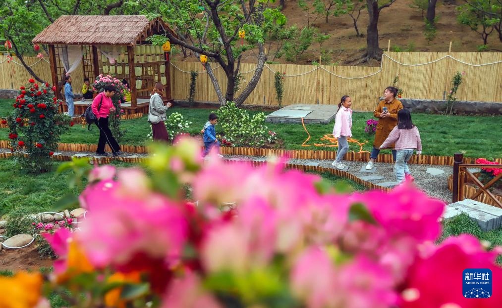 5月2日,游客在河北省遵化市兴旺寨镇一处农家院景点游玩。