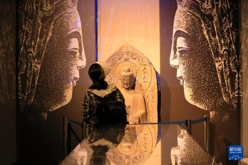 5月1日,游客在山西省运城博物馆参观。