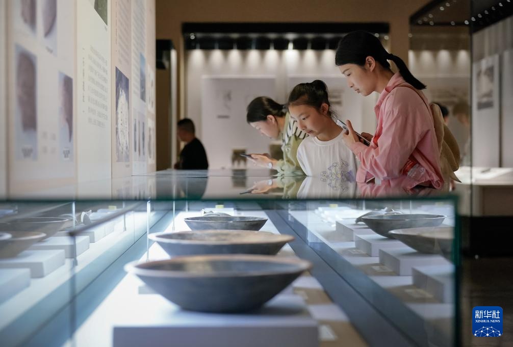 5月1日,游客在甘肃省天水市博物馆参观。