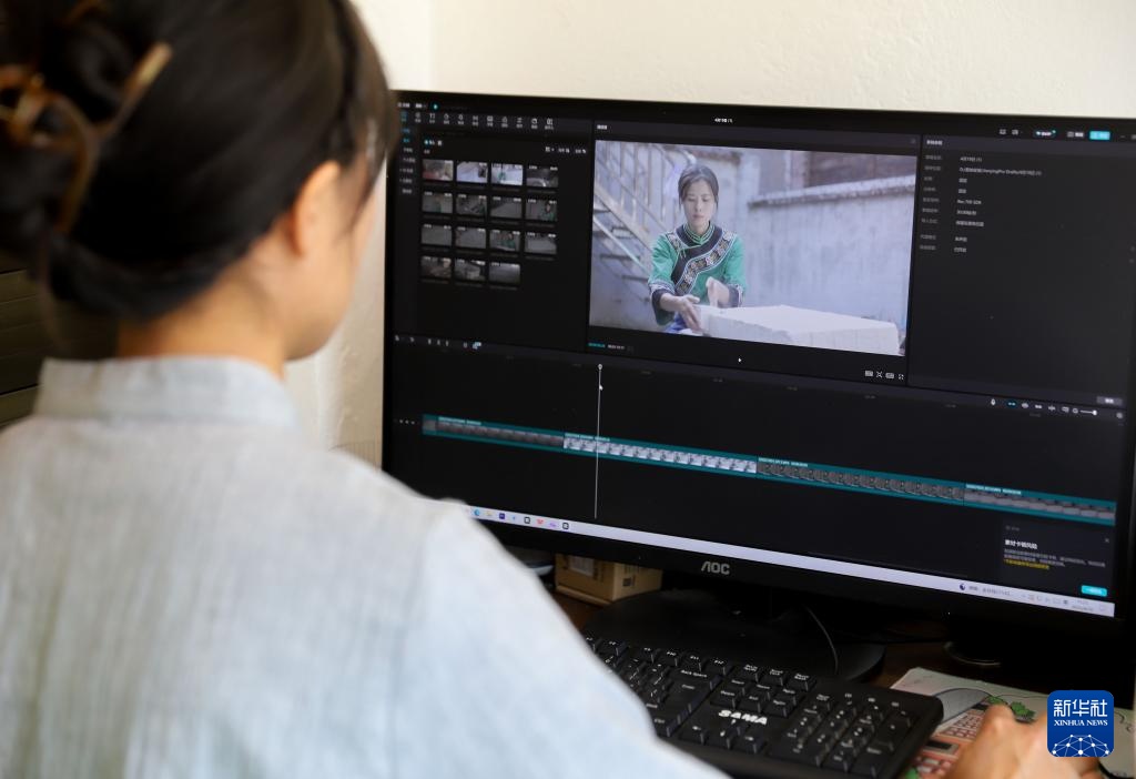 4月19日,陈星星在下院村剪辑制作灰豆腐短视频。