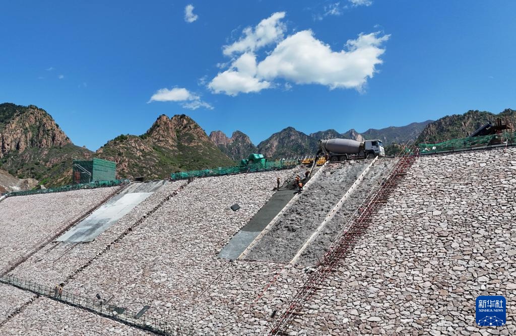 5月3日,工人在河北省秦皇岛市抚宁抽水蓄能电站下水库建设工地施工。